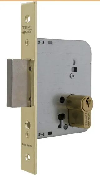 Cerradura Tesa modelo 20105PHL con bombín incluido. El artículo es nuevo. - Acabado en latón. - Mecanismo de seguridad. - Incluye bombín.