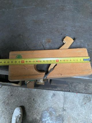 Cepillo de carpintero para trabajar la madera. - Cuerpo de madera. - Hoja de corte metálica. - Marca HBS.