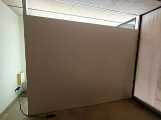 Panel de melamina de color blanco. Tenemos 5 unidades, precio unitario - Medidas: 100x224cm Utilizados para crear aparador en negocio. Muy útiles para crear muebles ya que están intactos.