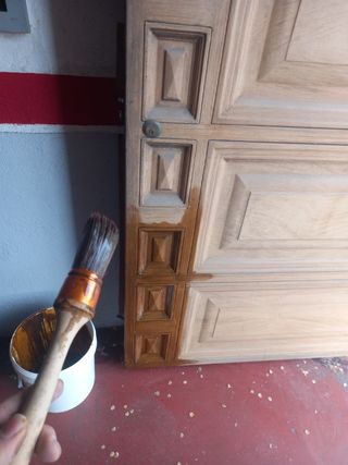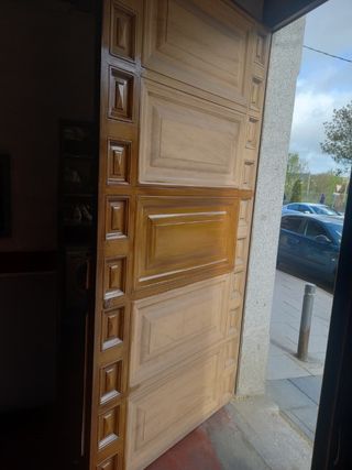 Puerta de madera con acabado natural. - Marco de madera incluido. - Tirador metálico.