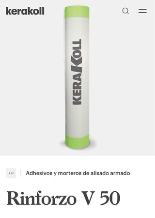 Nuevo y precintado Rollo 50m2 1x50m Varias unidades Malla de refuerzo para enfoscados de la marca Kerakoll. - Modelo Rinforzo V 50. - Adhesivos y morteros de alisado armado.
