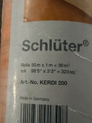 Nuevo y precintado Mejor marca del mercado 30x1m 30m2 varias unidades Rollo de lámina impermeabilizante Schluter Kerdi, ideal para baños, terrazas y zonas húmedas. - Color naranja. - Textura cuadriculada. - Material de alta resistencia.