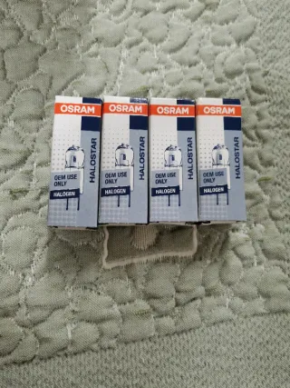 Bombillas halógenas OSRAM HALOSTAR. - Modelo: G4 - Voltaje: 12V - Potencia: 20W - Uso OEM Bombillas Individuales: 1,5€ Pack 10 bombillas:12,5€ Pack 20 bombillas:22€