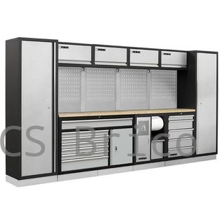 MÓDULO ESQUINERO DE CONJUNTO DE ARMARIOS DE TALLER S/INOX 192837 DESCRIPCIÓN: - Armario superior y armario base sólidos muy válidos par ambientes de taller con herramientas pesadas. - El armario base, al disponer de cerradura, permite guardar herramientas valiosas con seguridad. - La base de inoxidable permite colocar herramientas y realizar trabajos sobre ella, por su firmeza y rigidez. Los paneles perforados permiten colgar herramientas con ganchos y los pilares fijan y dan rigidez al conjunto. - Forma parte de los conjuntos modulares y pueden realizarse combinaciones de armarios y módulos según necesidades. - Conjunto enviado ...