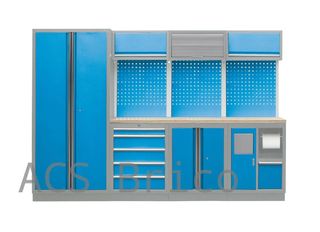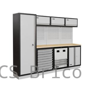 MODULO ESQUINERO DE CONJUNTO DE ARMARIOS DE TALLER S/MADERA 192841 DESCRIPCION: - Armario superior y armario base sólidos muy válidos par ambientes de taller con herramientas pesadas. - El armario base, al disponer de cerradura, permite guardar herramientas valiosas con seguridad. - La base de madera permite colocar herramientas y realizar trabajos sobre ella, por su firmeza y rigidez. Los paneles perforados permiten colgar herramientas con ganchos y los pilares fijan y dan rigidez al conjunto. - Forma parte de los conjuntos modulares y pueden realizarse combinaciones de armarios y módulos según necesidades. - Conjunto enviado de...