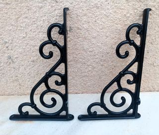 2 Escuadras de metal esmaltadas al horno en color negro, miden 26,5cm de largo y 16,5cm de alto, nuevas nunca utilizadas, varias disponibles. 🎁Mas artículos en mi perfil. 📱Acepto pago bizum. ⛔Balda, estantería, potencia.