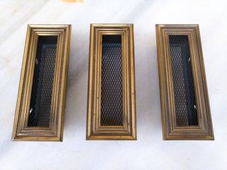 Rejilla de ventilación con marco extraible de latón y cajetín de acero galvanizado, para ventilacion de campanas de chimenea u otro tipo de ventilación, fuertes y decorativas, en perfectas condiciones, medidas en las fotos. -Precio por unidad, 3 disponibles. 🎁Mas artículos y rejillas en mi perfil. 📱Acepto pago bizum. ⛔Reja, celosía, parrilla, vintage