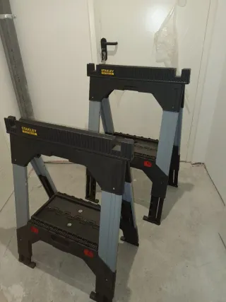Se venden dos borriquetas Stanley Fatmax, ideales para trabajos de bricolaje y construcción. - Color: Negro y gris. - Material: Plástico y metal.