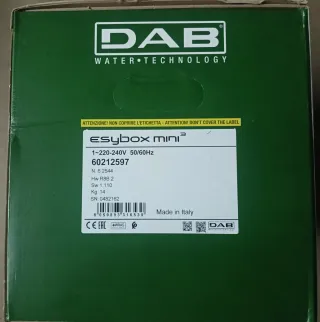Grupo de presión electrónico DAB ESYBOX MINI 3. Sin sacar de la caja, mantiene embalaje original. ENVIO 360€ ENTREGA EN MANO 300€ -Grupo de presión doméstico individual para viviendas. - Sistema plug-and-play integrado. - Extremadamente silencioso. - Confort de presión constante. - Certificado ACS, WRAS y NSF para agua potable. - Posibilidad de instalación horizontal o vertical. - Garantiza ahorro energético de hasta el 50%. - Conectividad integrada para gestionar la bomba.
