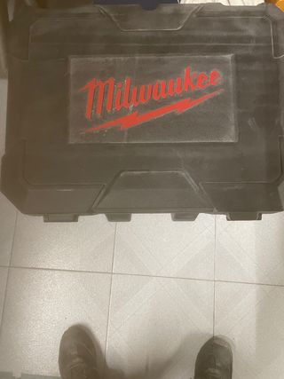 Maletín de transporte para herramientas Milwaukee. Ideal para proteger y organizar tu taladro y accesorios. - Color negro. - Logo de Milwaukee en rojo.