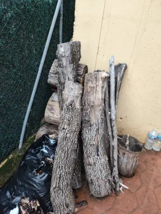 Se vende lote de leña y listones de madera, ideal para proyectos o fuego. - Varios troncos de madera. - Listones de diferentes tamaños. - Material natural para diversas utilidades.