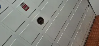 Puerta de garaje en buen estado, lista para ser instalada.270x230 - Color blanco. - Diseño seccional. - Incluye dos distintivos de seguridad ADT.