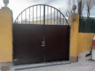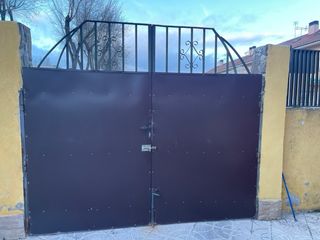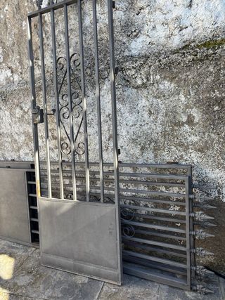 Conjunto de puerta de hierro y dos verjas. - Puerta de hierro con medidas de 2.10 metros de alto por 75 cm de ancho. - Incluye dos verjas a juego. Para venir a recoger, no hacemos envío.