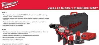 NUEVO: Taladro percutor subcompacto MILWAUKEE® de alto rendimiento con 190 mm de largo, ideal para trabajar en áreas confinadas. Electrónica REDLINK™ que protege a la máquina y a la batería contra la sobrecarga. Portabrocas metálico 10mm: permite un cambio rápido de accesorio. Durabilidad, agarre y retención. Indicador de carga y luz LED integrado. Incluye taladro M12, cargador, estuche rígido y dos baterías. IVA NO INCLUIDO. Somos distribuidores Milwaukee.