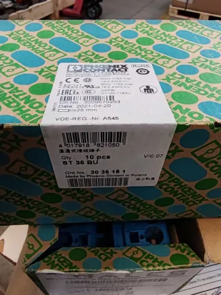 Vendo cajas de 10 unidades de bornes terminal pasante Phoenix Contact 3036181, Azul ST 35 BU 2.5 to 35 mm² 1 Abrazadera de resorte IECEx, ATEX