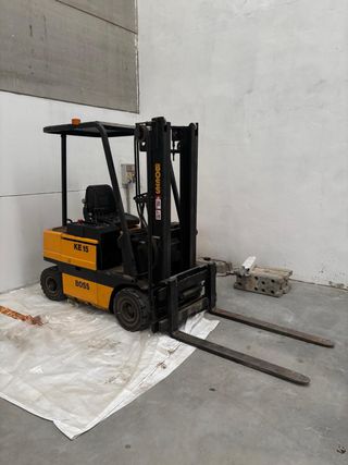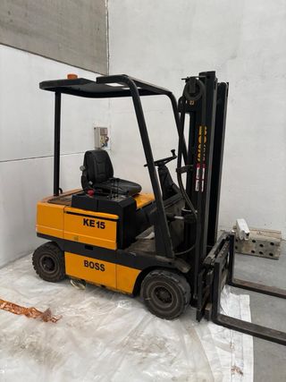 Carretilla elevadora marca BOSS, modelo KE15. electrica con Cargador -funciona muy bien - Color amarillo y negro. - Mástil de elevación. - Horquillas metálicas - 3 metros altura