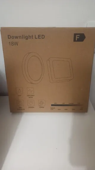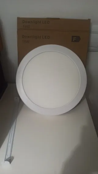 Downlight LED 18W nuevo a estrenar, en su caja original. Luz cálida 3000K. Incluye driver y soportes. Tiene una pequeña marca estética (ver foto), no afecta al funcionamiento. Ideal para cocina, pasillo o baño (zona seca).