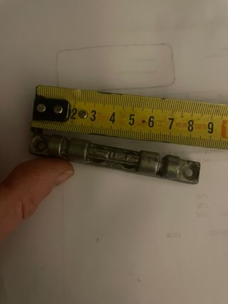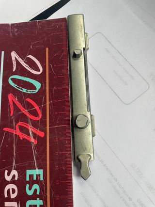 Pasador para ventana o puerta de PVC de la marca Aubi. Pieza de recambio para carpintería.usado en perfecto estado descatalogado no existe recambio nuevo . - Mecanismo de cierre. - Material metálico.