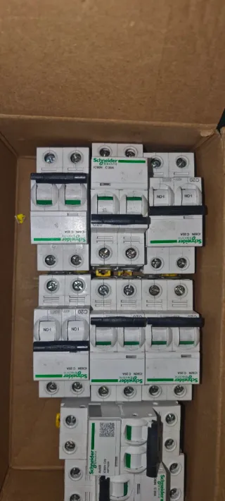 Lote de 10 disyuntores Schneider Acti9 IC60N C20. - Marca: Schneider Electric - Modelo: Acti9 IC60N - Corriente nominal: C20 - Tensión nominal: 400V Lote entero por 100€