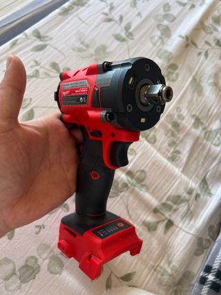 Pistola de impacto Milwaukee en color rojo y negro. - Mango ergonómico. - Diseño compacto.
