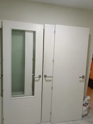 Conjunto de puertas de interior. - 3 puertas lisas. - 3 puertas con cristal. - Pomos, tapajuntas,ect...