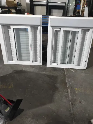 Se venden dos ventanas de aluminio con doble acristalamiento (Climalit) y persiana incorporada. - Medidas: 91 ancho x 108 alto - Color: Blanco brillo - Material: Aluminio - Tipo de vidrio: Climalit - Incluye persiana enrollable - 2 Mosquiteras enrollables - Posibilidad de instalación de mosquiteras por suplemento de 30 euros