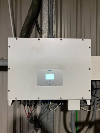 Inversor Deye de 60kW en color blanco. Diseñado para sistemas de energía solar. - Pantalla digital integrada. - Conexiones para cableado en la parte inferior. necesito cambiarlo para poder legalizar la instalación. tengo 20kw en placa y no puedo hacerlo teniendo inversor de 60kw. ese es el motivo del cambio. lo cambiaría por uno de 20kw