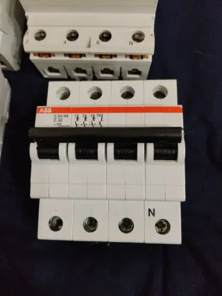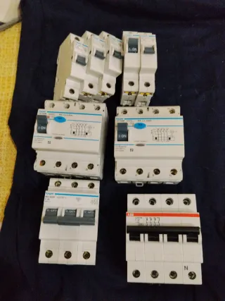 Lote de material eléctrico variado, ideal para instalaciones y reparaciones. - Marca hager 8 unidades - Marca ABB 1 unidad. - Interruptores automáticos (magnetotérmicos). - Diferentes marcas y amperajes visibles. - Componentes para cuadros eléctricos. Algo negociable.