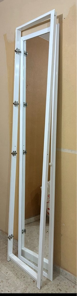 Marco y puerta de aluminio blanco con espejo. Alto 236 Ancho 53 - Material: Aluminio. - Color: Blanco. - Incluye espejo.