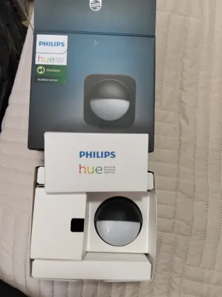 Sensor de movimiento para exteriores de la marca Philips Hue. - Diseñado para uso en exteriores. - Color negro y blanco.