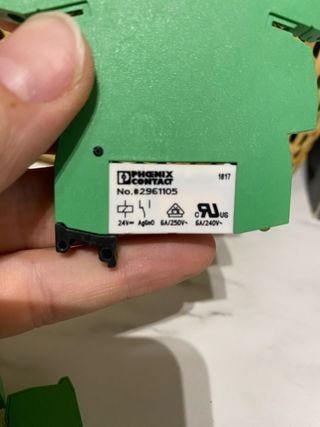 Relé de estado sólido Phoenix Contact. - Modelo: PLC-BSC-24DC/21 - Voltaje de entrada: 24VDC - Voltaje de salida máximo: 250VAC/6A - Fabricado en Alemania También disponible : 1Ud: PLC-BSC-230UC/21-21. 15€ 1Ud: PLC-BSC-24DC/21-21. 15€