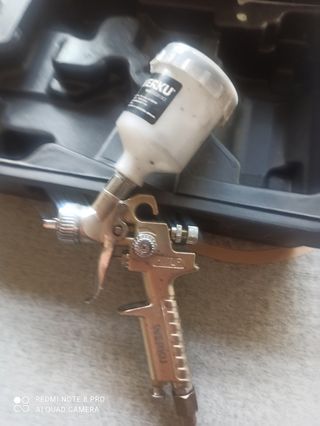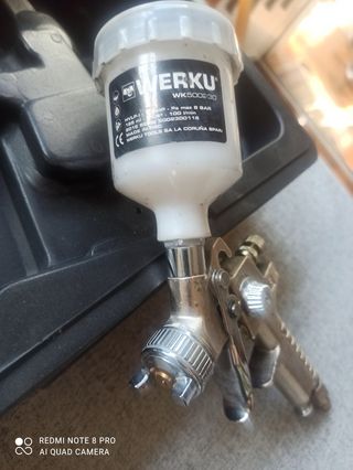 Pistola de pintura pequeña de la marca Werku. - Modelo: WK500230 - Capacidad: 125 ml - Presión máxima: 8 BAR - Caudal de aire: 100 l/min - Fabricada en PRC