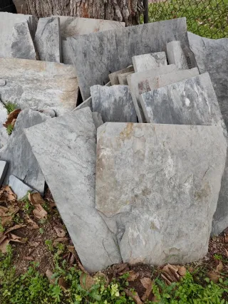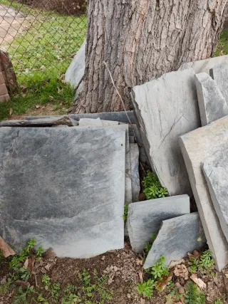 Lajas de pizarra natural, ideales para proyectos de jardinería o construcción. - Variedad de tamaños disponibles. - Material resistente y duradero. - Sin cemento, listas para usar.