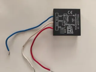 Regulador de incandescencia ETI. - Modelo: RHW 500E - Voltaje: 220V - Potencia máxima: 500W - Conexiones: Azul, Blanco, Rojo Todas las características en foto. Mirar mi perfil, tengo varios.