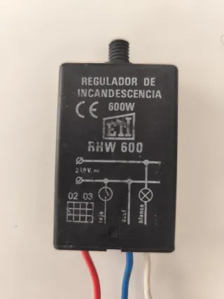 Regulador de incandescencia ETI. - Modelo RHW 600. - Potencia máxima de 600W. - Voltaje 230V. - Conexiones para cableado rojo, azul y blanco. Todas las características en foto. Mirar mi perfil, tengo varios.