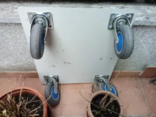 Base con cuatro ruedas para facilitar su movilidad. Ruedas giratorias la base es de metal de 65x52 ruedas que aguantan mucho peso. Se venden también las ruedas sueltas
