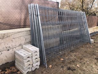 14 unidades de Valla móvil para obras o eventos y 14 bases de hormigón para sujetarlas en su base. - Dimensiones: 3440 x 1880 mm. - Material: Metal galvanizado.