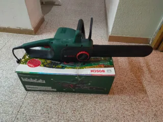 Sierra eléctrica de la marca Bosch. - Motor potente. - Diseño ergonómico. - Barra de corte de 3/8 - 1.1 mm. - Depósito de aceite de 250 ml.