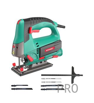 HYCHIKA Sierra de Calar, 110mm, 800W 800-3000SPM, Velocidad Ajustable (1-6), 4 Modos de Corte, Corte -45º a 45º, Caja Magnética de Hoja, Cortar Madera Metal Plástico