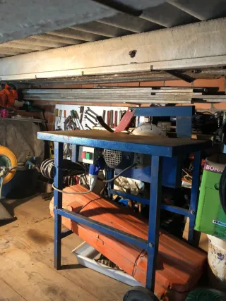 Sierra de banda Einhell MBS 400 para cortar metal. Es un equipo robusto y fiable. - Base metálica con ruedas para facilitar el transporte. - Mordaza ajustable para fijar las piezas. - Brazo de corte con motor. Nunca se ha usado, tiene algo de oxido superficial y suciedad porque lleva 15 años en el rincon del garaje. Barias sierras de cinta tambien sin estrenar.