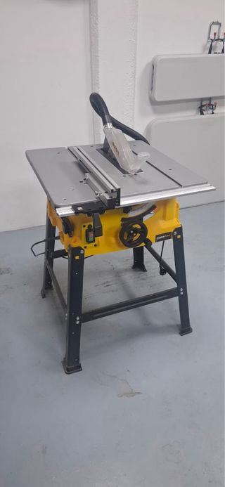 Sierra circular de mesa Powerplus con base. -2.000 W -Diámetro hoja de sierra: 250 mm, -Profundidad de corte a 90 °: 85 mm - Incluye manguera de aspiración.