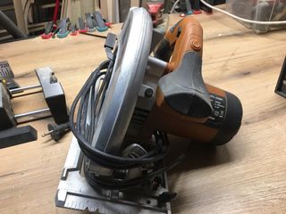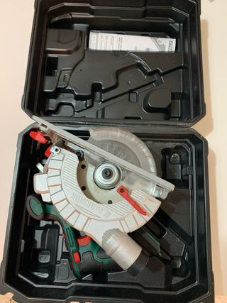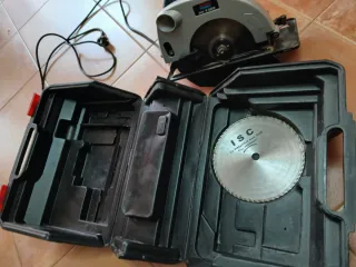 Sierra circular de la marca Parkside, ideal para trabajos de carpintería. Se incluye el maletín para su transporte y almacenamiento. Usada 2 veces - Sierra circular con disco. - Maletín de transporte negro.