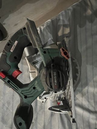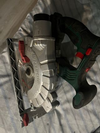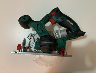 Pequeña sierra circular portátil de la marca Parkside, ideal para trabajos precisos. Se incluye su maletín de transporte. Se usó para dos cortes , vendo por qué no uso . - Diseño compacto y ligero. - Mango ergonómico para un mejor agarre. - Maletín de plástico resistente con asa roja. - Batería y cargador .