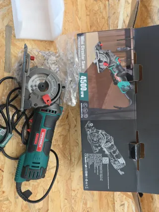 Mini sierra circular de la marca HYCHIKA, ideal para trabajos de bricolaje y cortes precisos. Viene con su caja original. - Velocidad de 4500 RPM. - Diseño compacto y ligero. - Incluye accesorios.