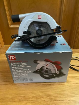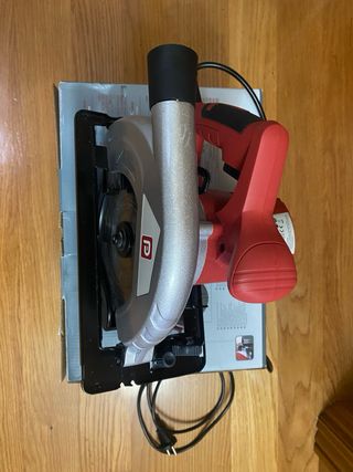 Sierra circular de 1200w de la marca Performance Power (la marca de Bricodepot). Seminueva. Impecable estado, solo la he usado una vez, totalmente demostrable. En su caja original y todo. Ø del disco 160 mm Velocidad en vacío 5.800 r.p.m. Profundidad de corte máximo: 90º - 52,5 mm / 45º - 34,5 mm Incluye llave hexagonal y guía paralela. Empuñadura ergonómica. Uso: recomendada para cortes de madera. Botón de seguridad de bloqueo-apagado para evitar un arranque imprevisto. Dispone de zapata ajustable para corte en ángulos de 0 ° a 45 °. Longitud del cable 2 m Peso 3,36 kg Color gris y rojo.