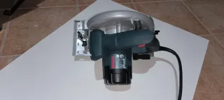 Sierra circular con accesorio para realizar cortes rectos y precisos. Ideal para trabajos de carpintería y bricolaje. Con muy poco uso - Incluye sierra circular. - Complemento para cortes rectos en acero inoxidable