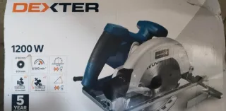 Sierra circular Dexter de 1200W, en su caja - Diámetro de disco: 185 mm. - Diámetro interior: 20 mm. - Velocidad: 6000 min⁻¹. - Capacidad de corte a 90°: 62 mm MAX. - Capacidad de corte a 45°: 48 mm MAX.