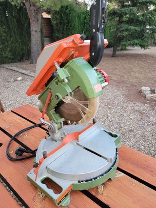 Maquina ingletadora de sierra circular inclinable. Motor de marca lime. Mesa superior con protector de corte.