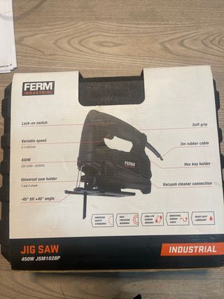 Sierra de calar FERM JIG SAW 450W JSM1028P. - Potencia de 450W. - Cumple con los estándares de seguridad europeos. - Rodamientos de alta precisión. - Escobillas de carbón de larga duración. - Cable de goma industrial. - Lubricación de alta resistencia. - Desarrollada en los Países Bajos.