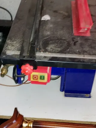 Sierra de mesa para trabajos de carpintería. Ideal para cortes precisos en madera. - Estructura metálica azul. - Superficie de trabajo amplia. - Botones de encendido y apagado. - Guía de corte ajustable. Precio negociable